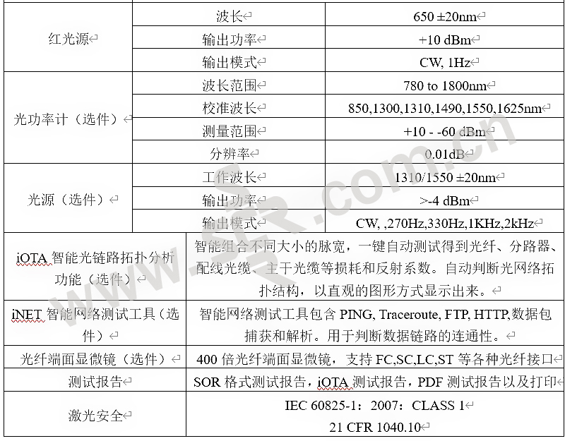 ·全面光纤测试应用,提供多波长选择:单模:1310/1490/1550/1625nm(带滤波器),可达35dB,多模:850/1300nm,18/22dB