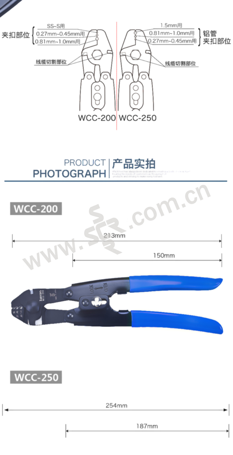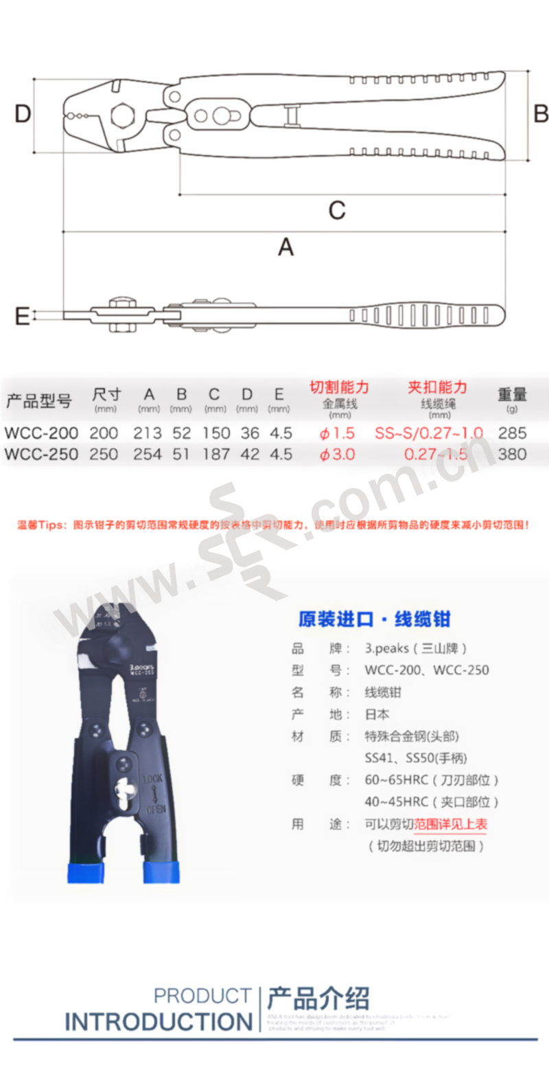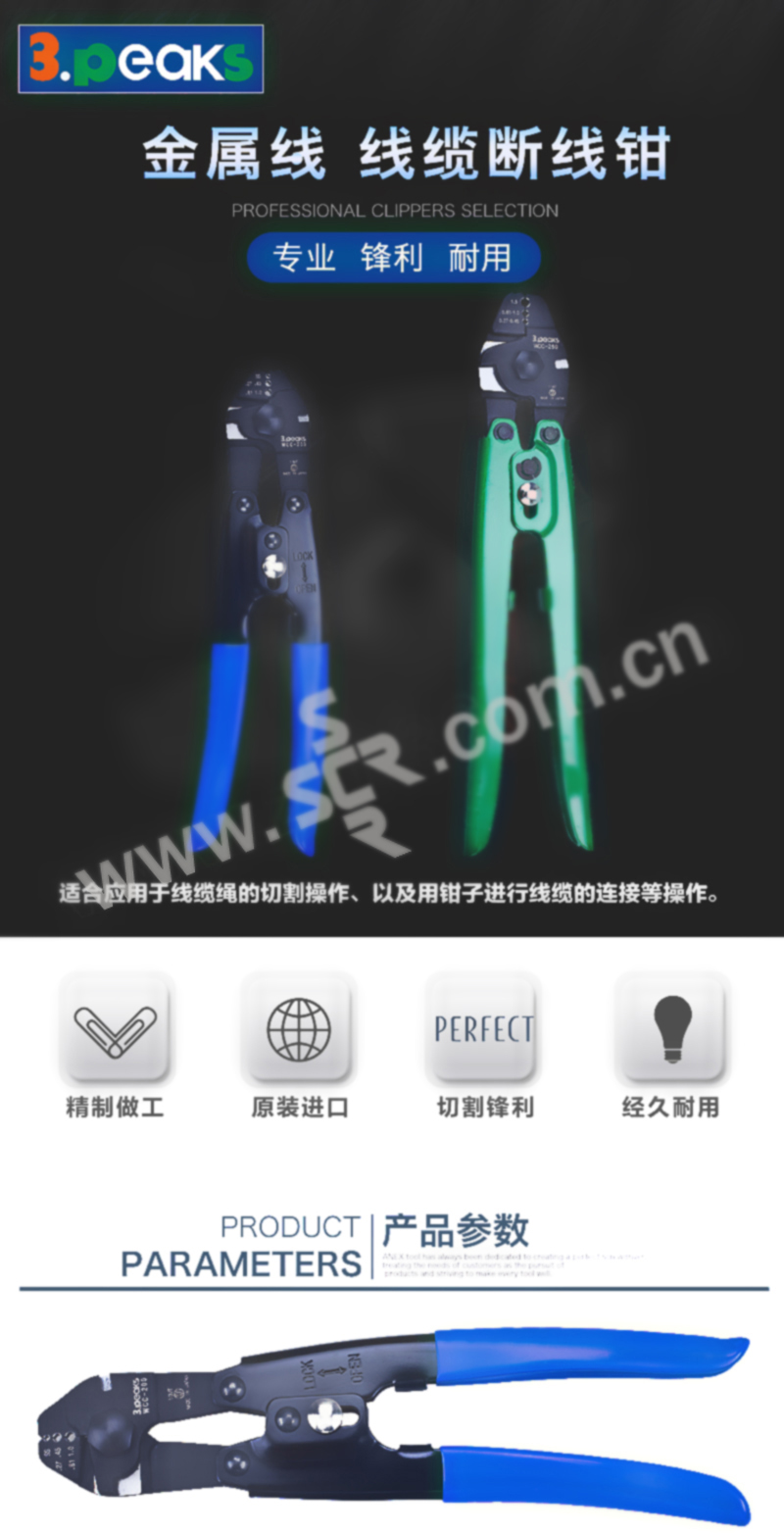 3PEAKS/三山 进口断线端子压线钳 WCC-250 250mm 1把