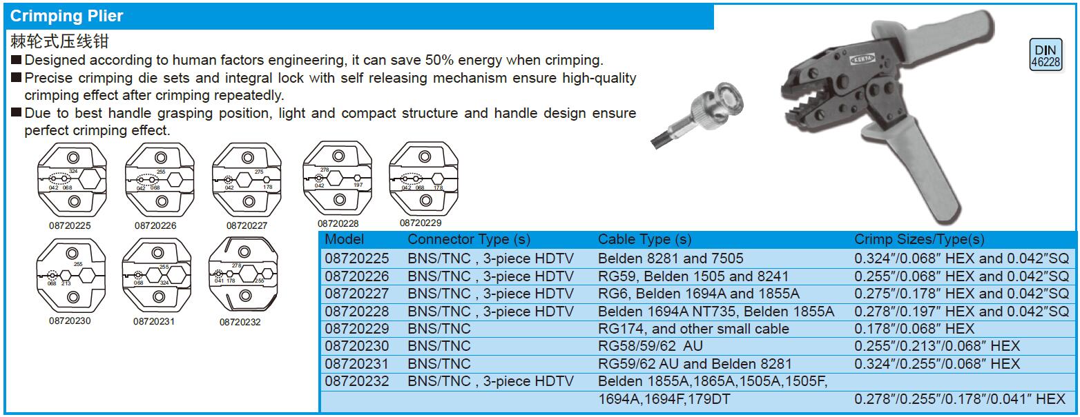 棘轮式压线钳 08720225 0.324"/0.068" 1把