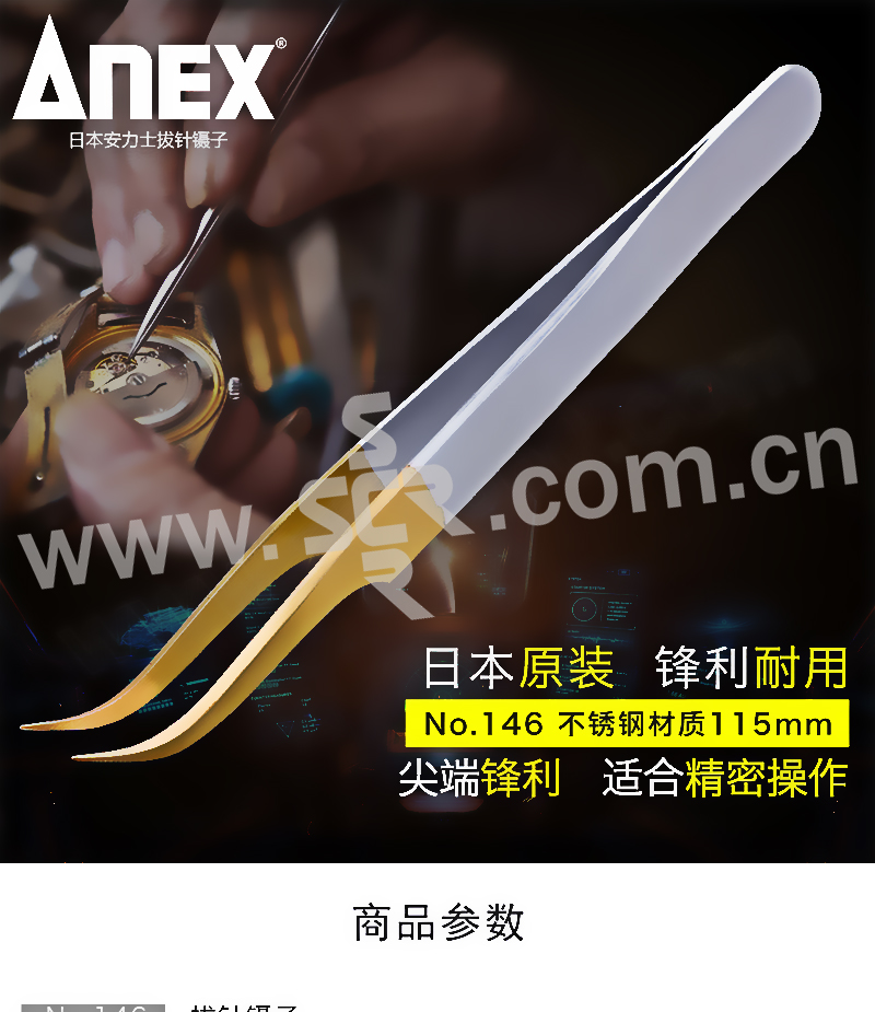 ANEX/安力士牌 进口不锈钢精密拔针镊子 No.146 拔针镊子115mm 1支