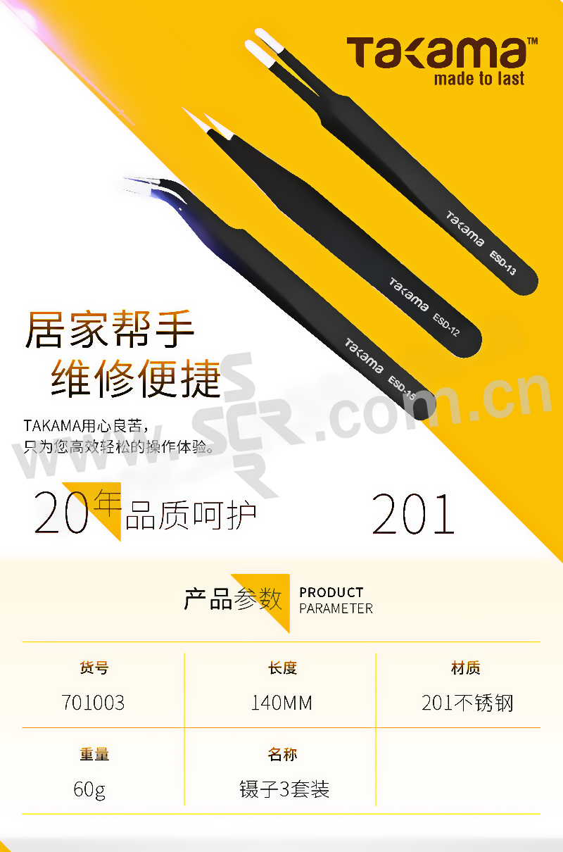 TAKAMA/台湾冠垣 镊子套装家用3件套 701003 镊子×3 皮套×1 1套