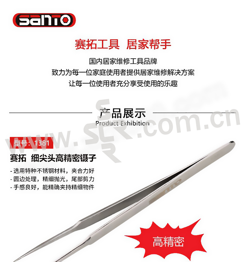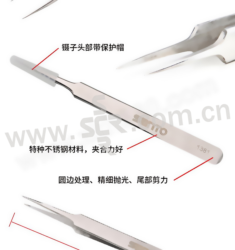 SANTO/赛拓 高精密尖头镊子 1381 1把