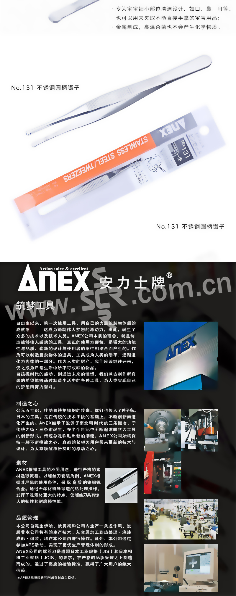 ANEX/安力士牌 进口婴儿用镊子 No.131 婴儿清洁镊子102mm 1支