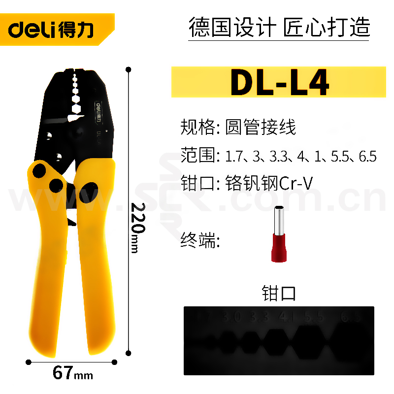 DELI/得力 同轴端子压接钳 DL-L4 冷压钳 1把