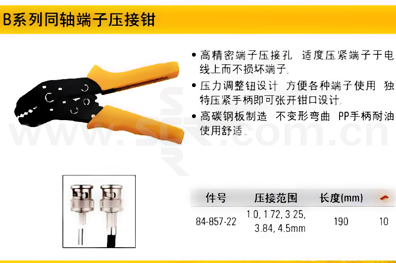 STANLEY/史丹利 B系列同轴端子压接钳 84-857-22 1mm 1.72mm 3.25mm 3.84mm 4.5mm 190mm 1把