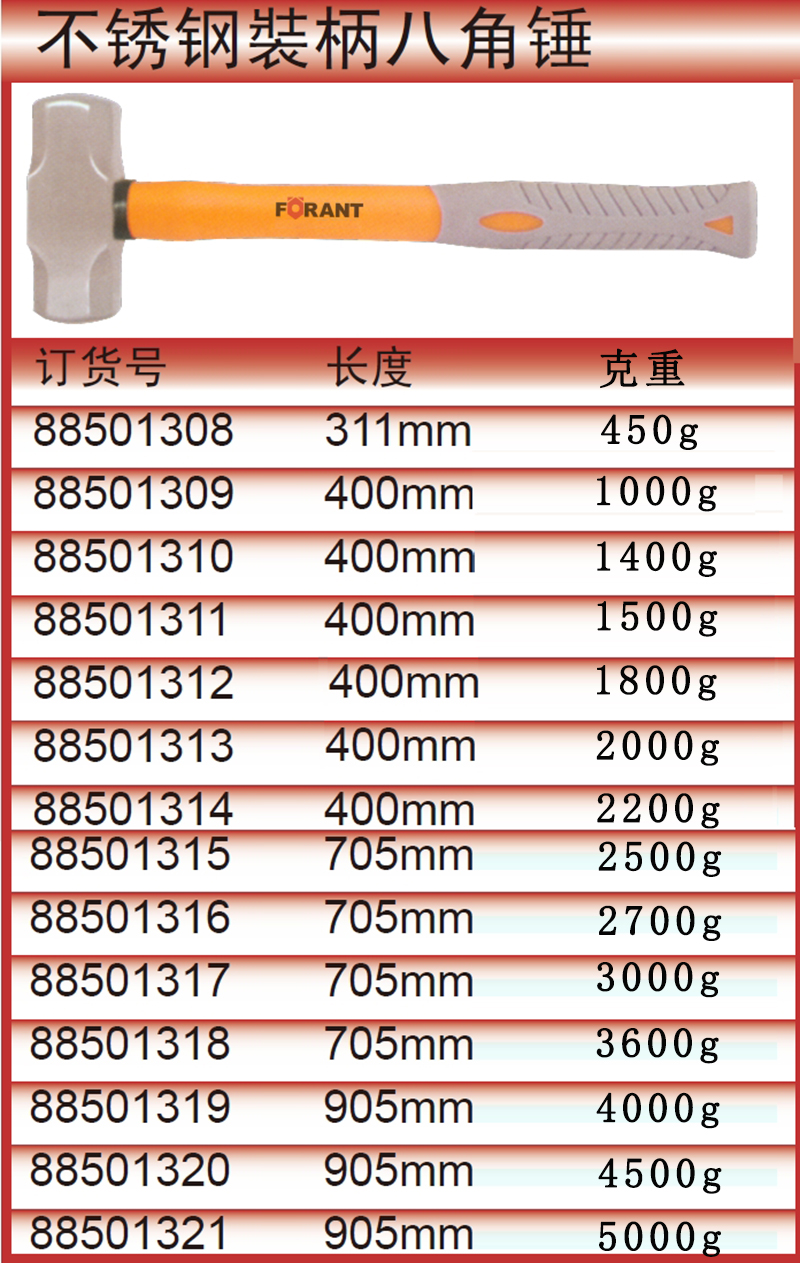 不锈钢装柄八角锤