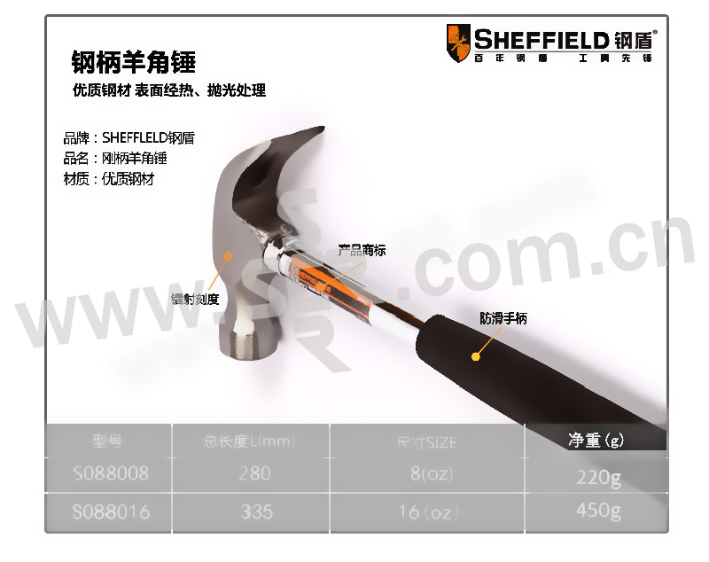 SHEFFIELD/钢盾 钢柄羊角锤 S088008 8oz 1把