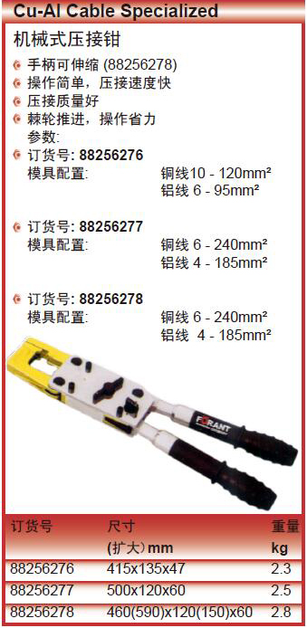 ·手柄可伸缩(88256278)操作简单,压接速度快压接质量好棘轮推进,操作省力
