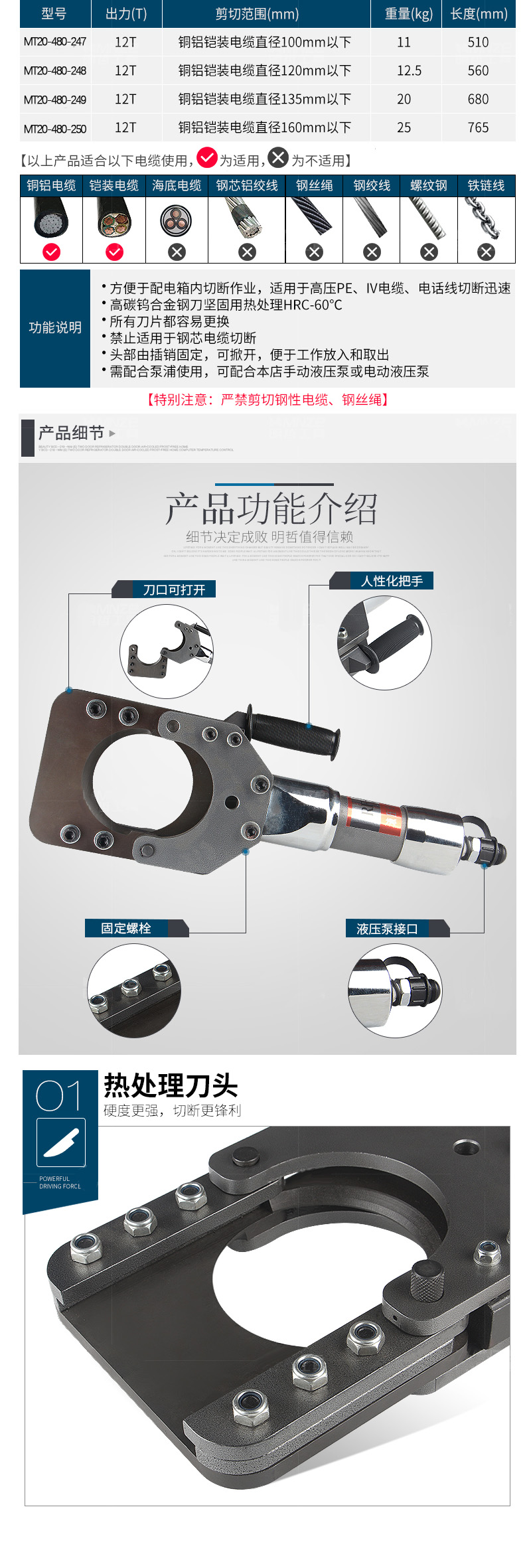 分体手动液压线缆剪电动断线钳铠装电缆剪刀