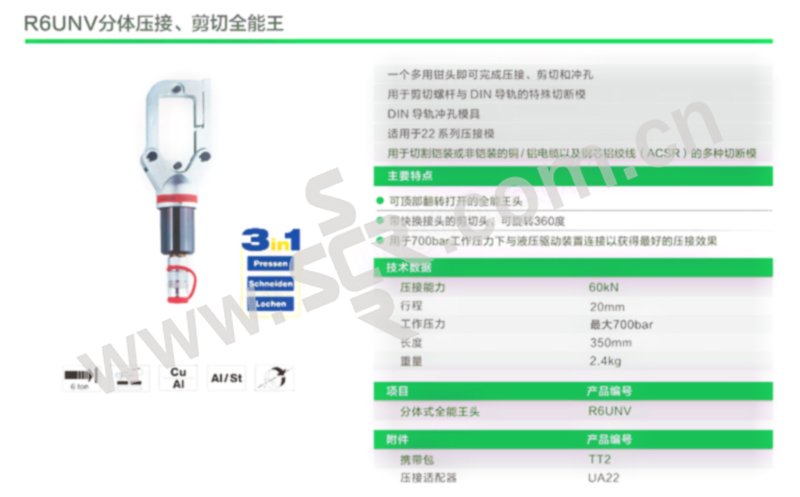 JUGUM/优亘 分体式液压压接/剪切全能头 R6UNV 工作行程20mm 1个