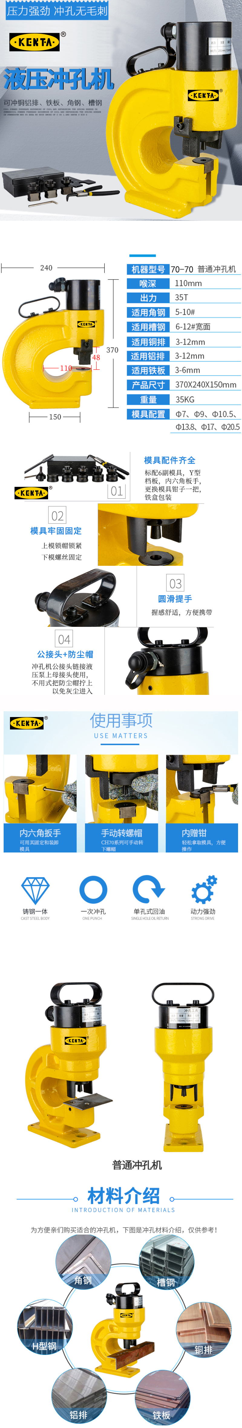分体式液压冲孔机电动角钢槽钢打孔机铜铝排手动开孔器铁板穿孔器