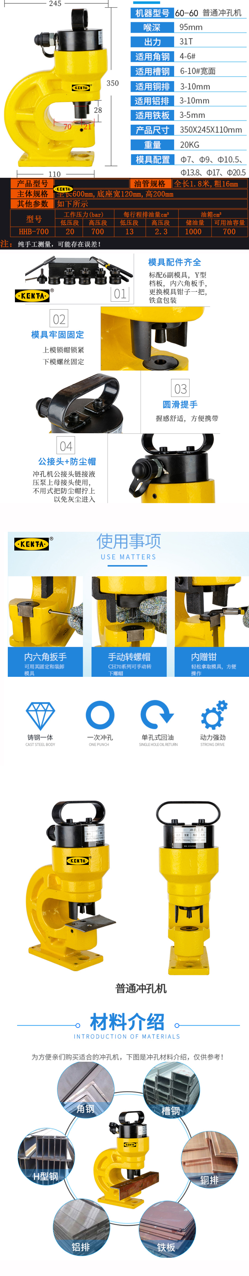 分体式液压冲孔机电动角钢槽钢打孔机铜铝排手动开孔器铁板穿孔器套装