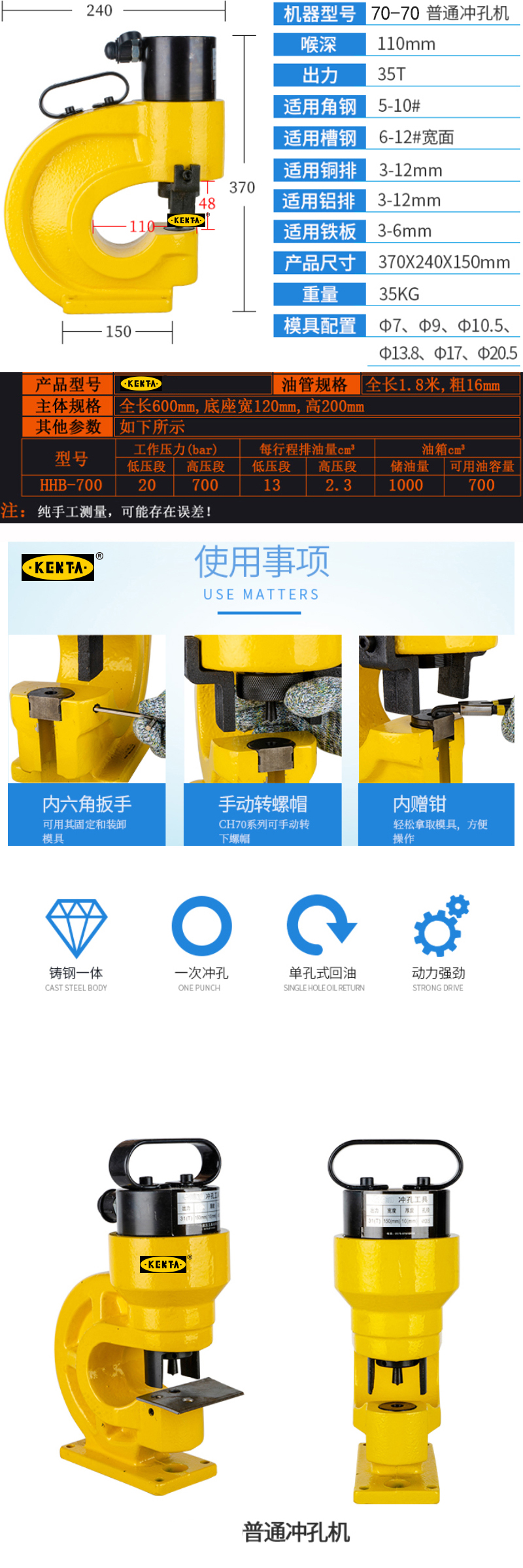 分体式液压冲孔机电动角钢槽钢打孔机铜铝排手动开孔器铁板穿孔器