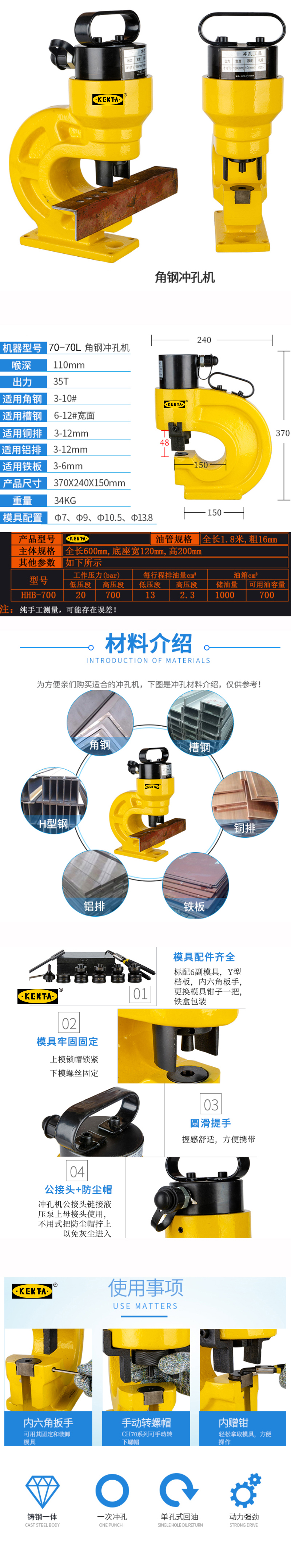 分体式液压冲孔机电动角钢槽钢打孔机铜铝排手动开孔器铁板穿孔器