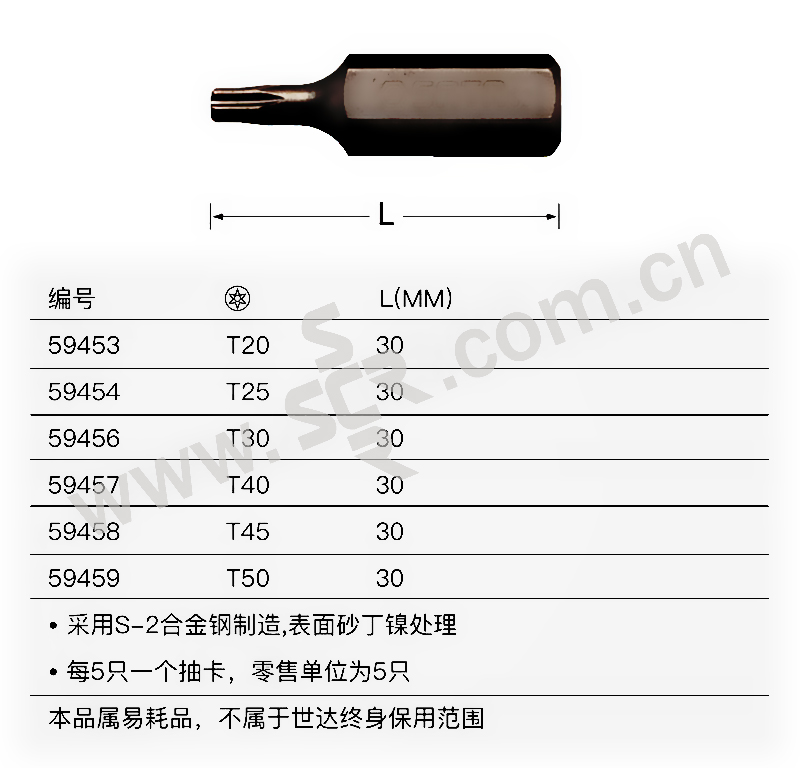 SATA/世达 8mm系列30mm长中孔花形旋具头 SATA-59453 TT20 1组