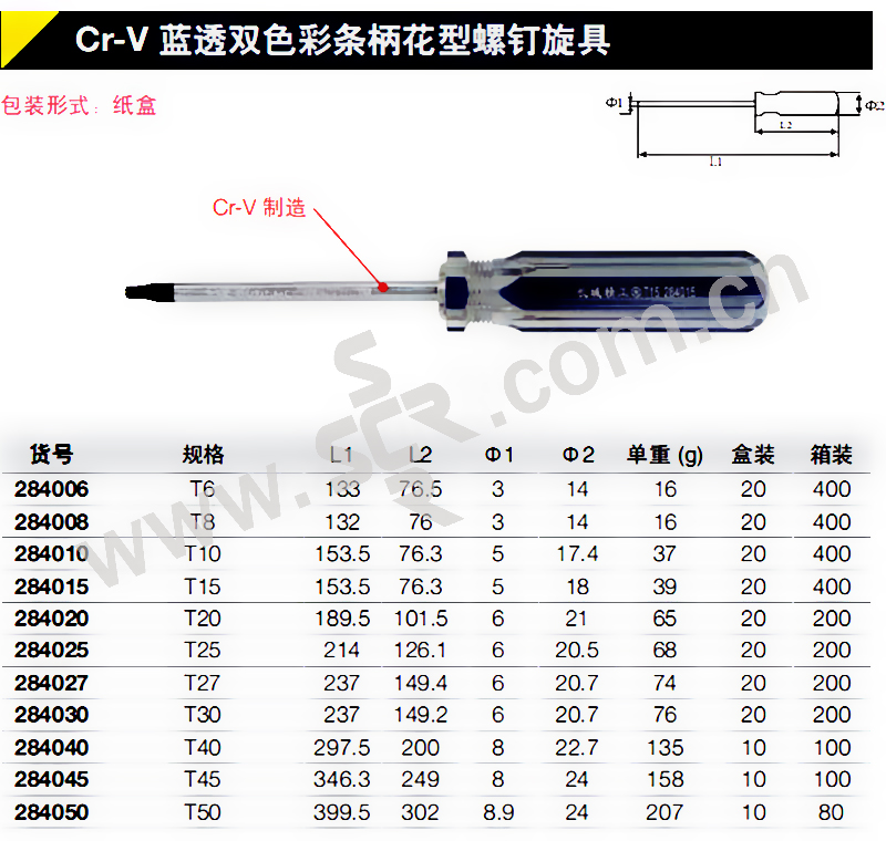 GREATWALL/长城精工 蓝透双色彩条柄花型螺钉旋具 GW-284006 T6 1支