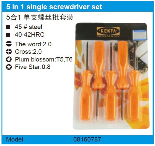 英文名称:  5 in 1 single screwdriver set