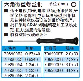 ·适于电视,钟表,电脑,眼镜,通讯仪器,光学仪器,录像机电话玩具模型,照相机及各种精密仪器设备的维护和修理。 ·批杆采用CR-Mo钢经精密加工及热处理,扭力,强度均达最佳。特有旋转式旋帽设计