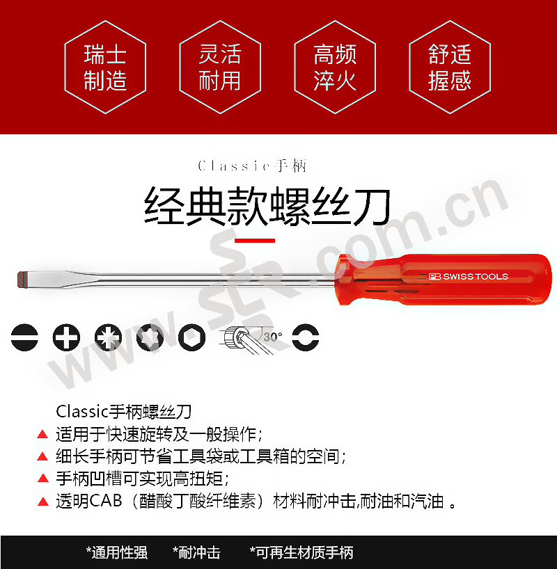 ·手柄材料乙酸丁酸纤维是一种经过改良的木制天然产物,可再生资源,加入独特的香草气味来中和。耐油和汽油,耐冲击.