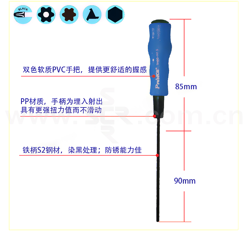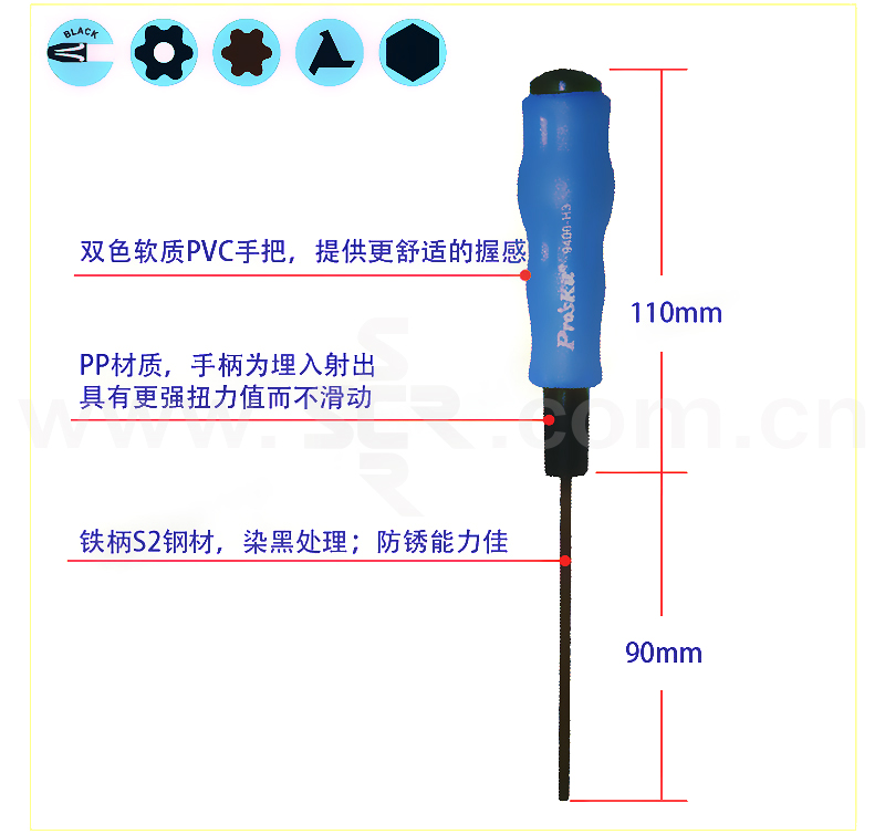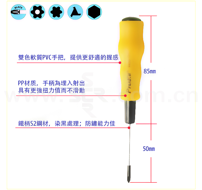 ·手柄为埋入射出,具有更强扭力值而不滑动。