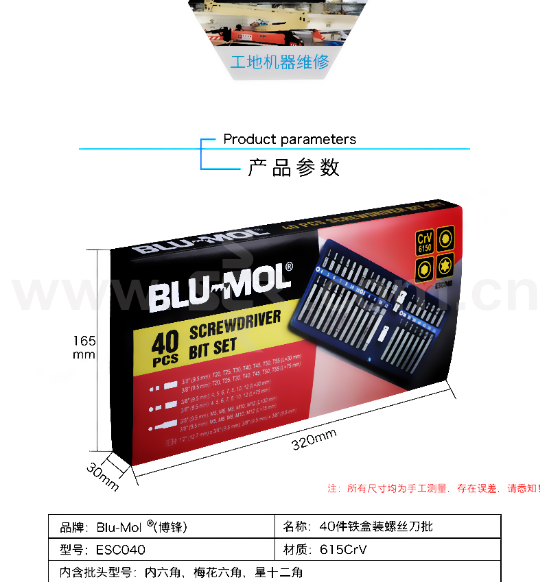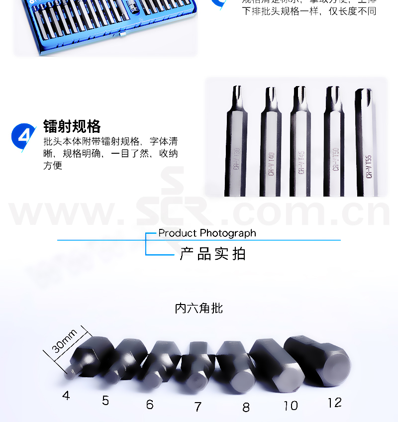 ·多种尺寸、多种批头、多种规格。盒装收纳,携带方便。适用范围广,满足大部分日常修理维护