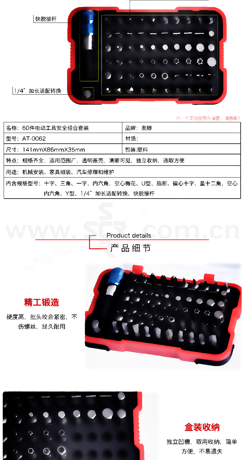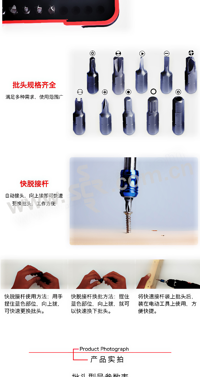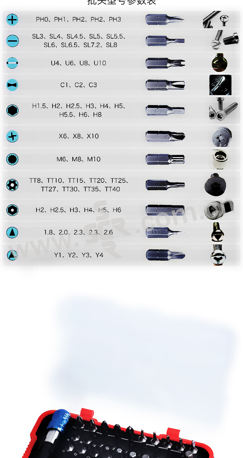 ·多种尺寸、多种批头、多种规格。盒装收纳,携带方便。适用范围广,满足大部分日常修理维护