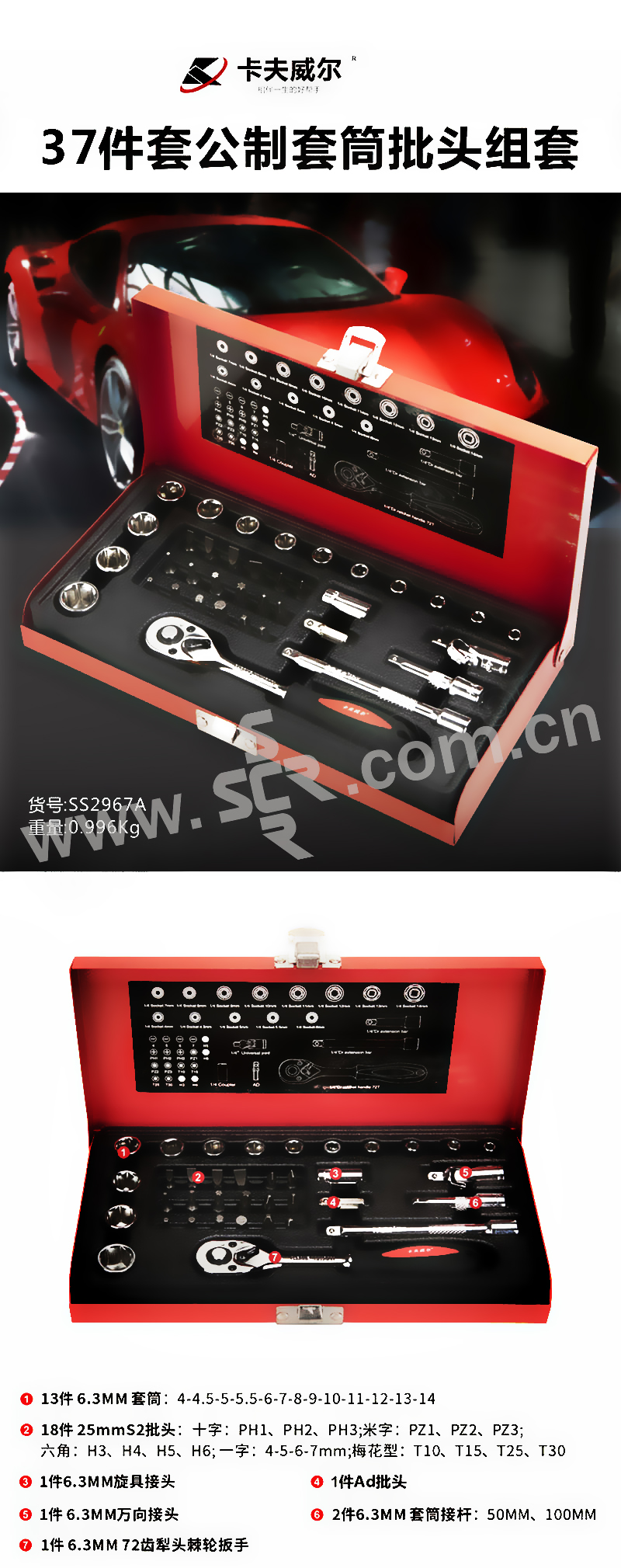 OK-TOOLS/卡夫威尔 棘轮扳手+螺丝批头组套 SS2967A 37件套 1套