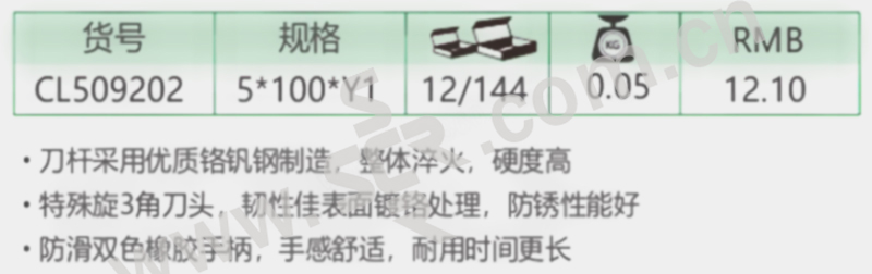 ·特殊旋3角刀头,韧性佳表面镀铬处理,防锈性能好