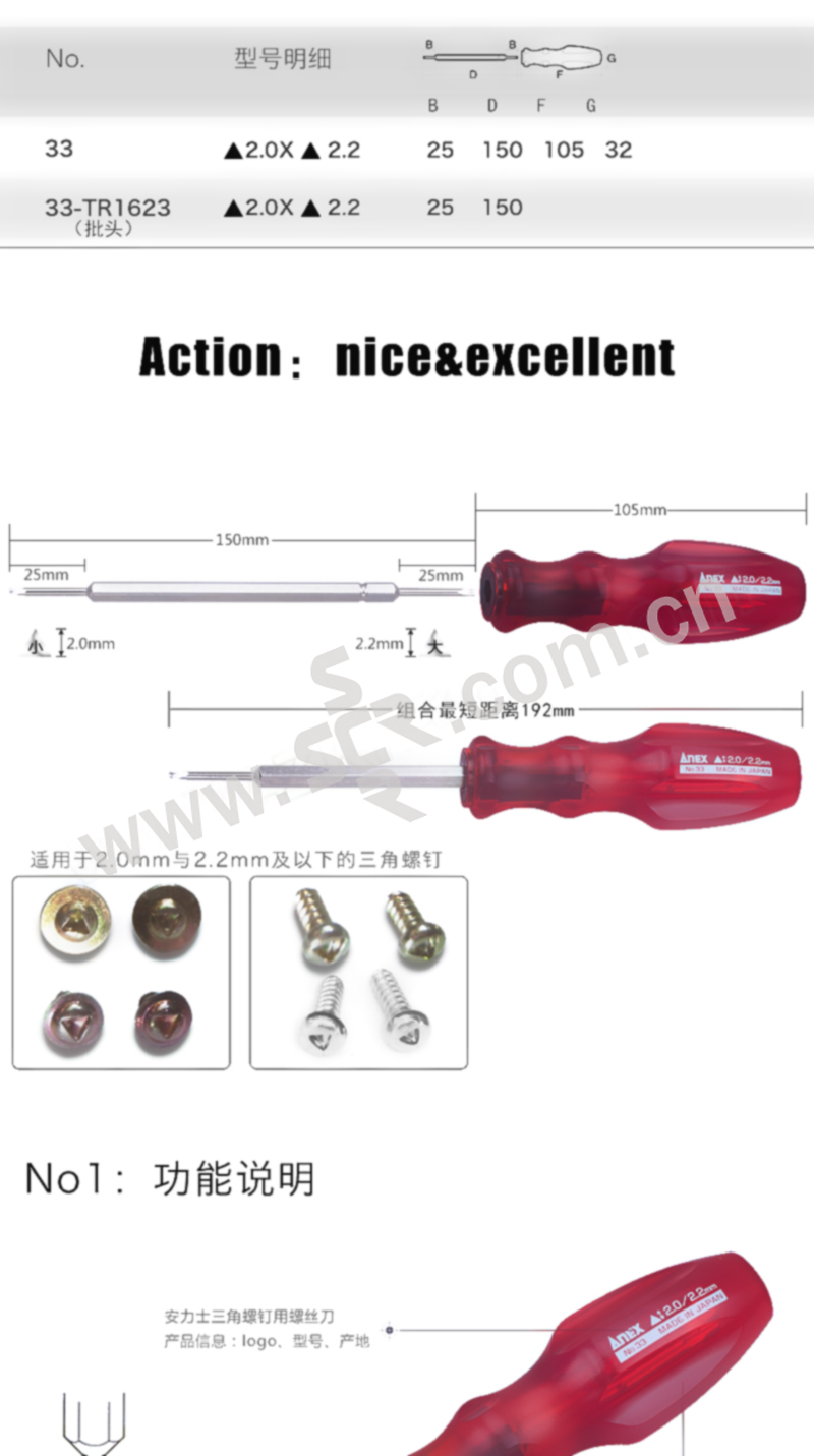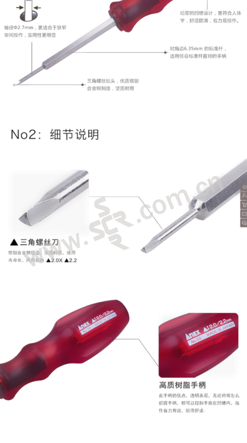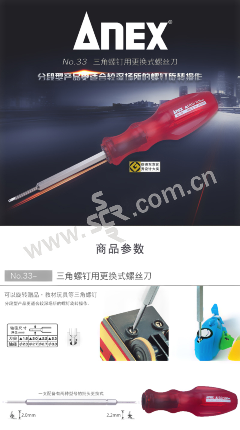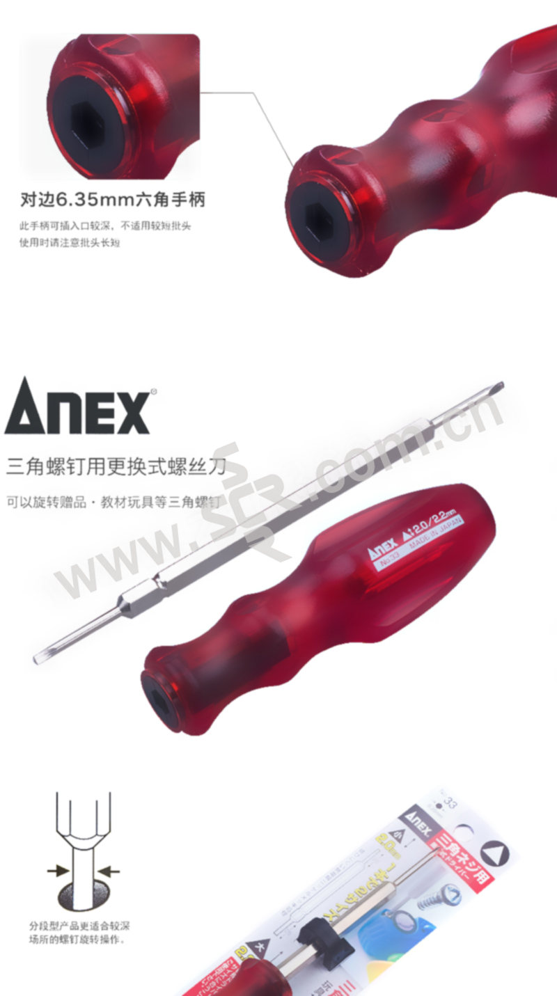 ANEX/安力士牌 进口三角型批头螺丝刀 NO.33 2×2.2mm 1支
