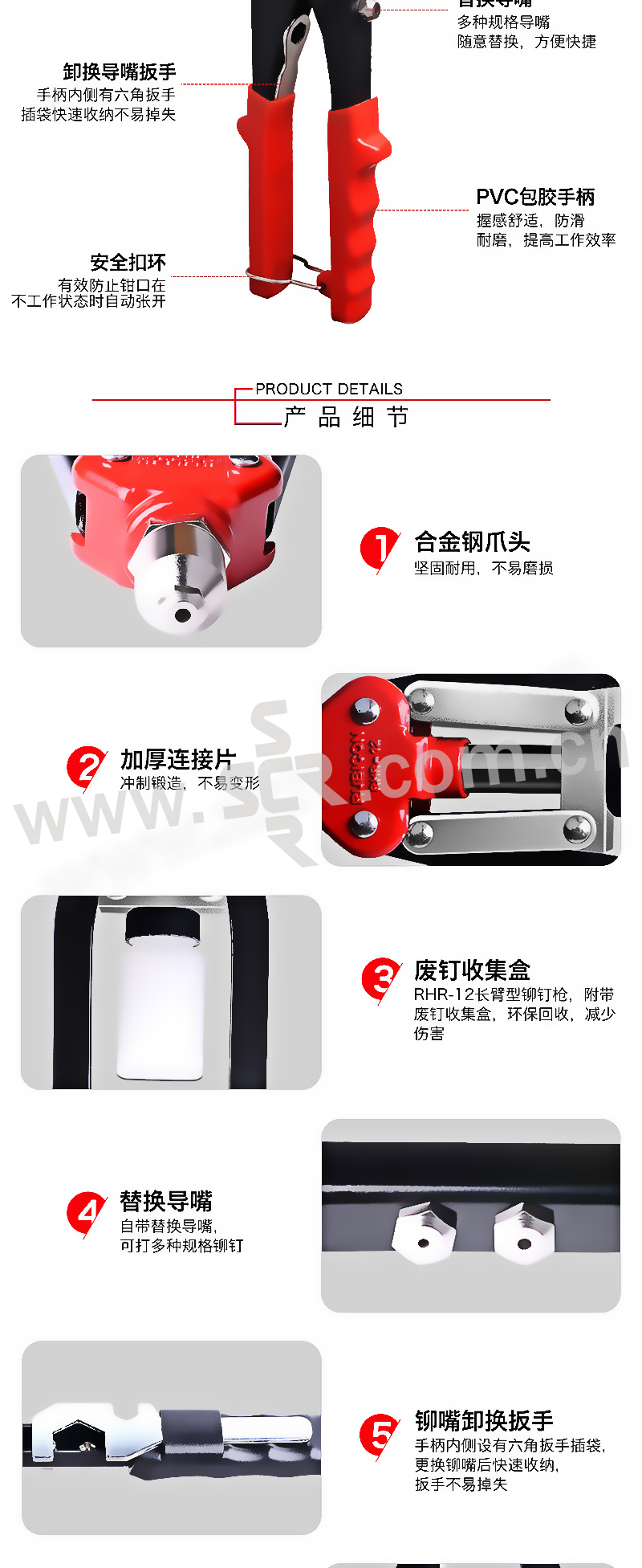 ·全钢构造钳身配有防脱手柄自如压出铆钉
