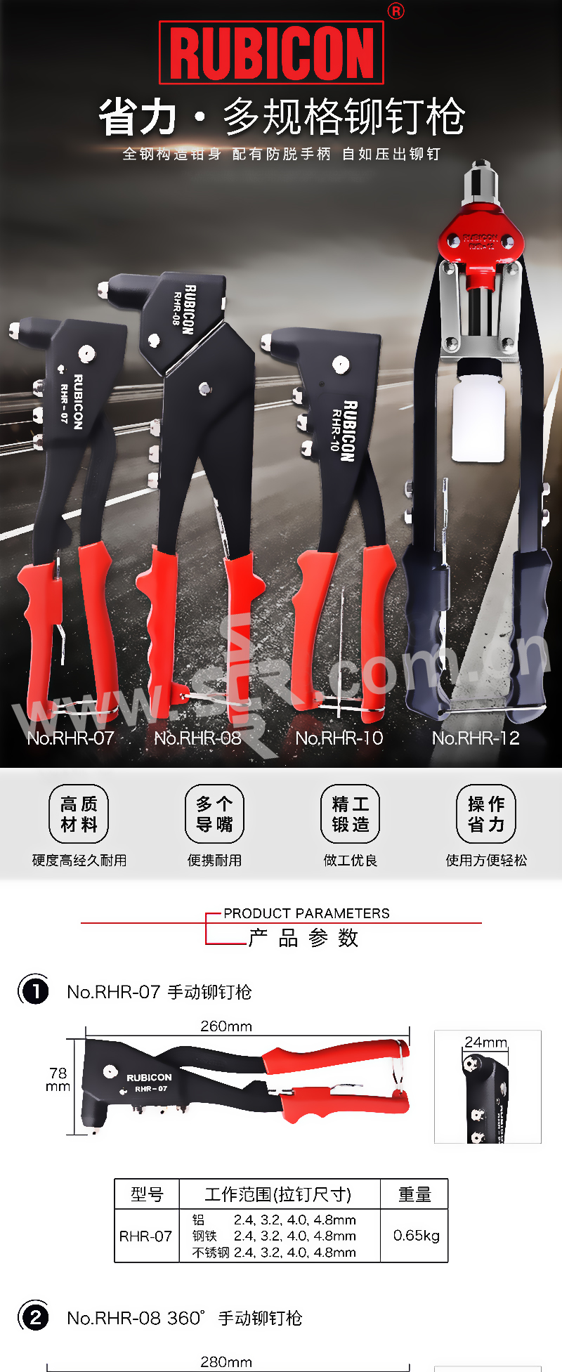 RUBICON/罗宾汉 进口长臂重型铆钉枪 RHR-07 柳钉范围2.4~4.8mm 1把