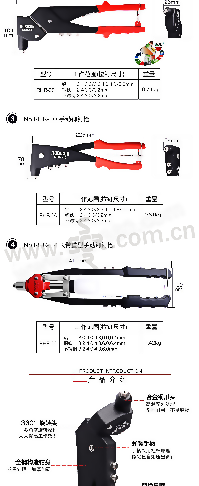 ·全钢构造钳身配有防脱手柄自如压出铆钉