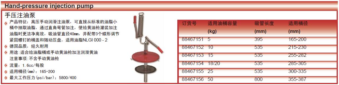 A14906 88467155 25Kg 25Kg 1.6cc/每股 5800/400psi/bar 535mm 300-335mm 8217.00