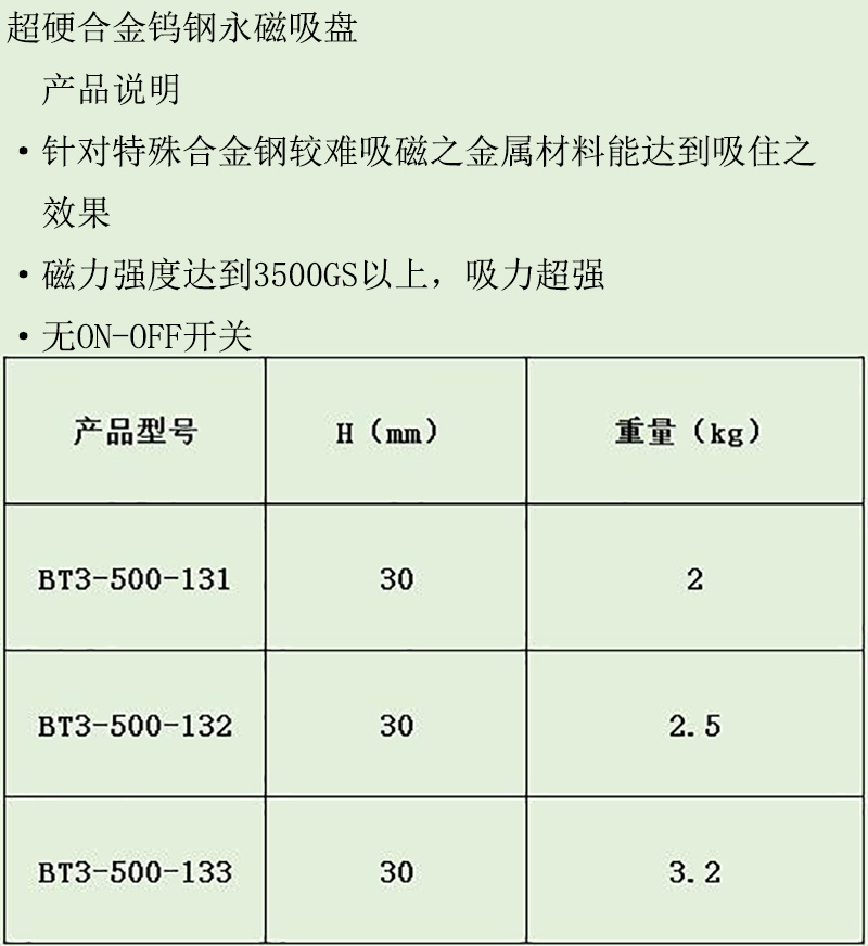 超硬合金钨钢永磁吸盘