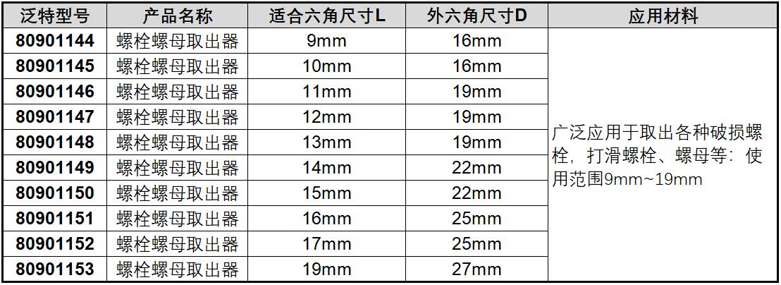 适合六角尺寸L