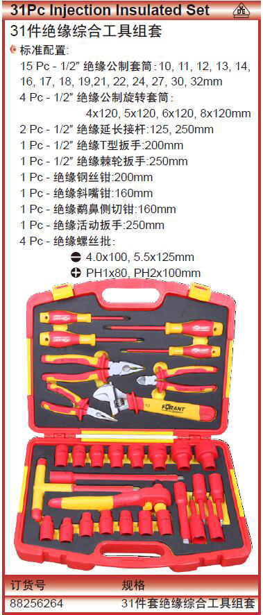 ·15Pc-1/2″绝缘公制套筒:10,11,12,13,14,