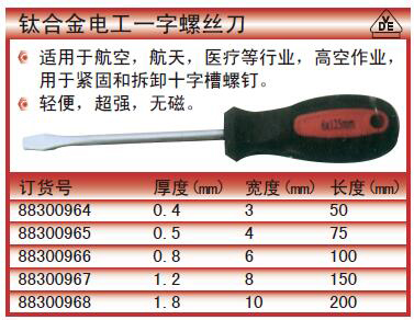 ·适用于航空,航天,医疗等行业,高空作业,用于紧固和拆卸一字槽螺钉。 ·轻便,超强,无磁。
