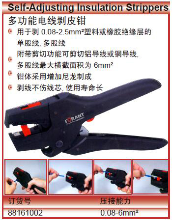·用于剥0.08-2.5mm²塑料或橡胶绝缘层的单股线,多股线附带剪切功能可剪切铝导线或铜导线,多股线最大横截面积为6mm²钳体采用增加尼龙制成剥线不伤线芯,使用寿命长