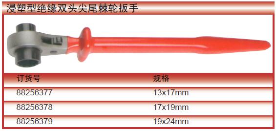 浸塑型绝缘双头尖尾棘轮扳手13×17mm