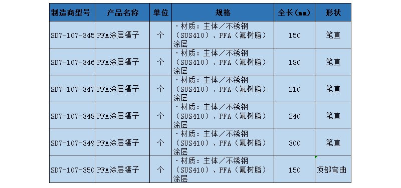 SLAMED PFA涂层镊子 210 SD7-107-347