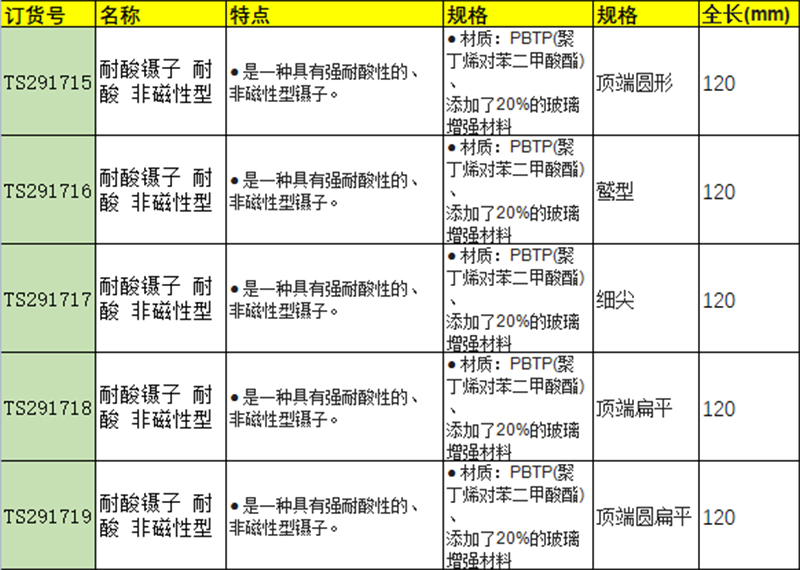 耐酸镊子 耐酸 非磁性型