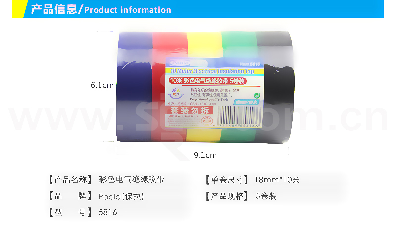 PAOLA/保拉 绝缘胶带 5816 10m 5卷 1筒