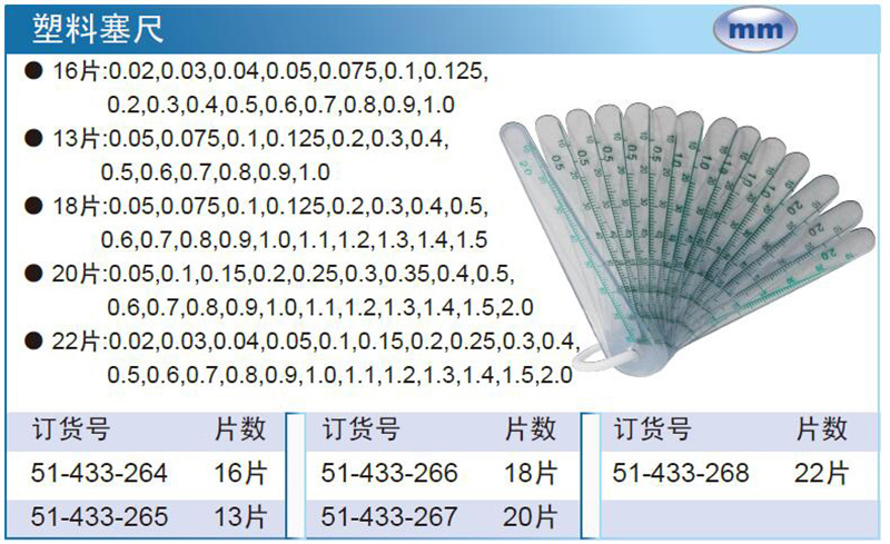 ·13片:0.05,0.075,0.1,0.125,0.2,0.3,0.4,