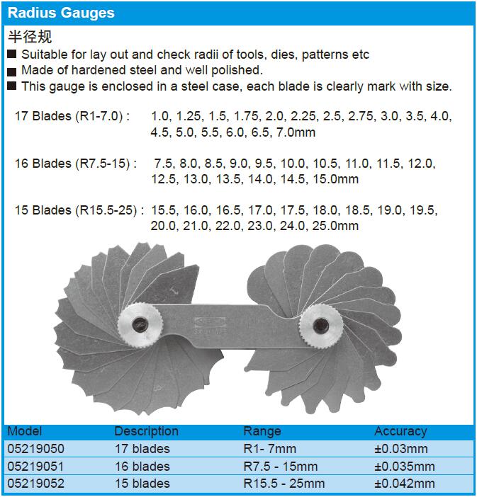 15片装半径规 005219052 R15.5~25mm 1把