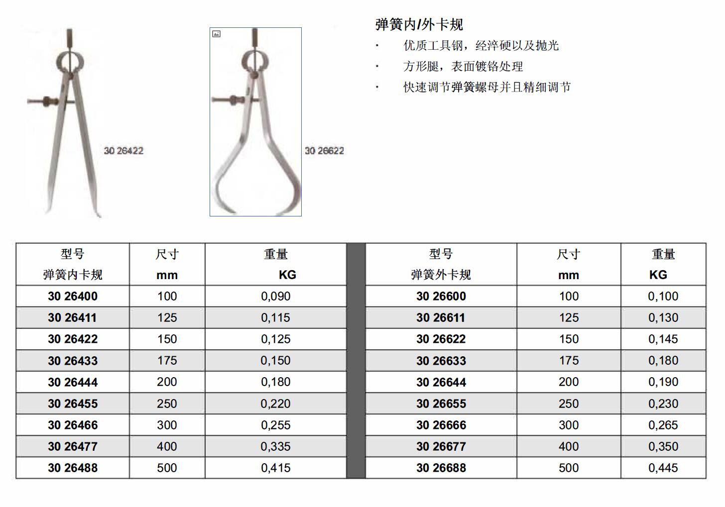 ·优质工具钢. ·经埣硬以及抛光方形腿. ·表面锁铭处理 ·快速调节弹簧螺母. ·精细调节