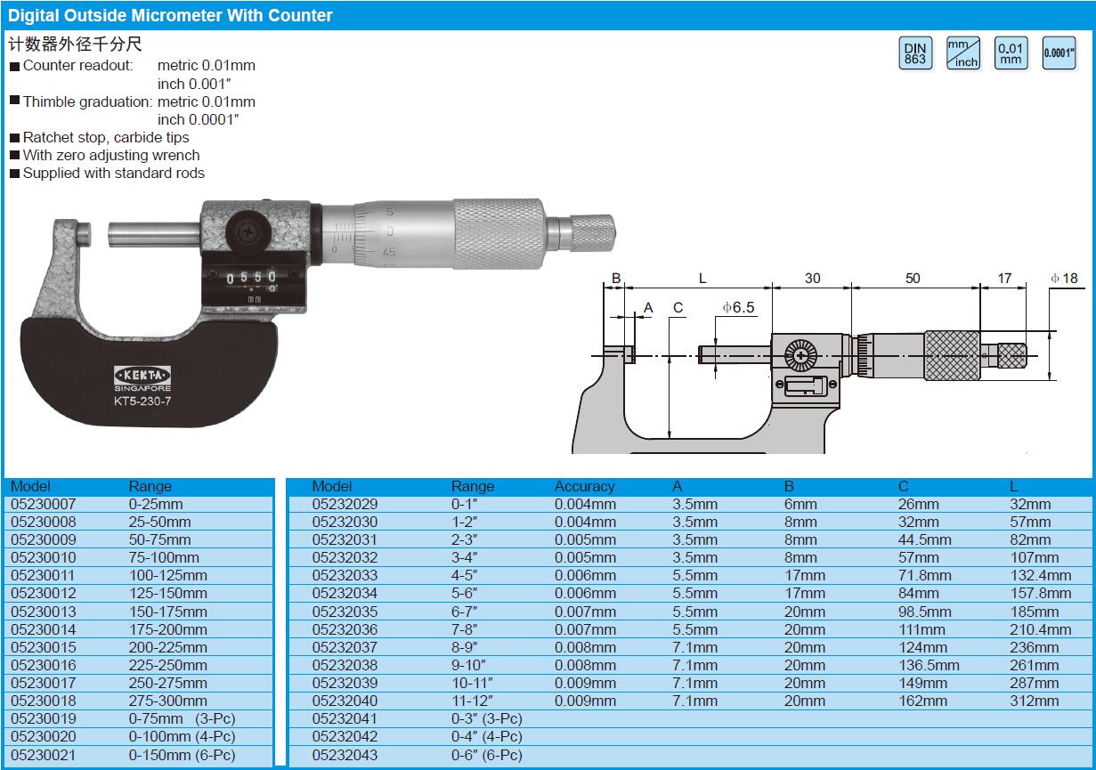 4件套计数器外径千分尺 005230020 0~100mm 1套