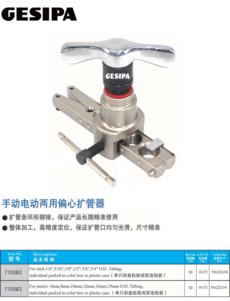 ·扩口精准,工艺精湛,轻松高效; ·手动电动两用; ·精准对位,操作方便。
