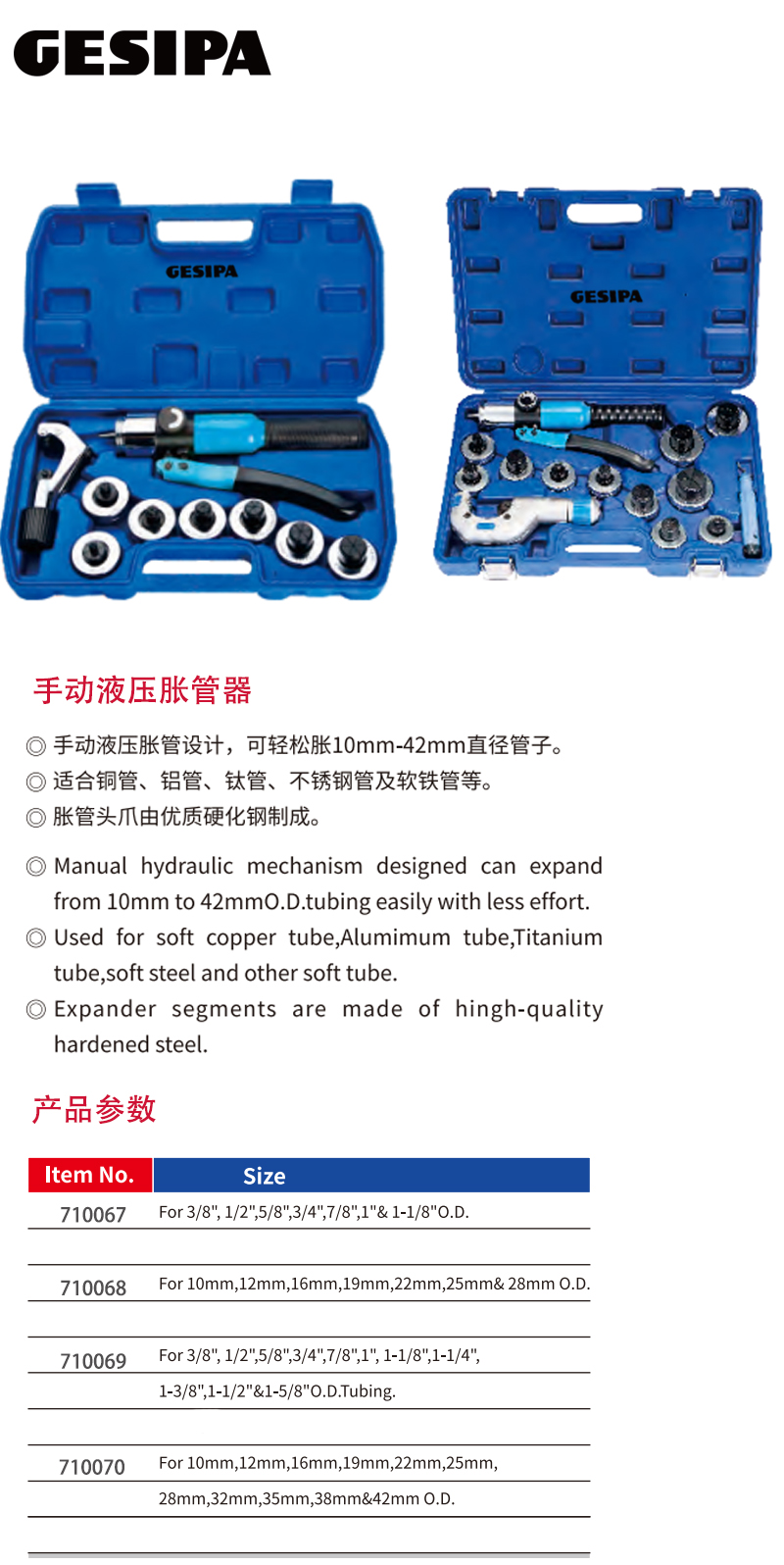 ·手动液压胀管设计,可轻松胀10mm-42mm直径管子;