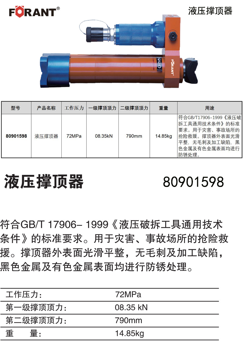 A31960 80901598 用于灾害、事故场所的抢险救援。 72MPa 08.35kN 08.35kN 14.85kg 45375.00
