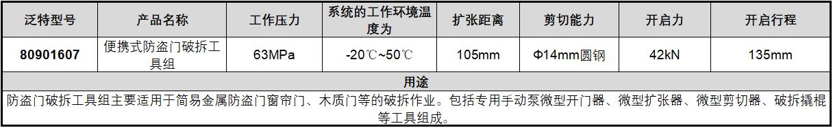 订货号 制造商型号 件数 包装 长度 宽度 高度 包含 工作压力 系统的工作环境温度为 最大扩张距离 最大剪切能力 最大开启力 开启行程 价格 购物车